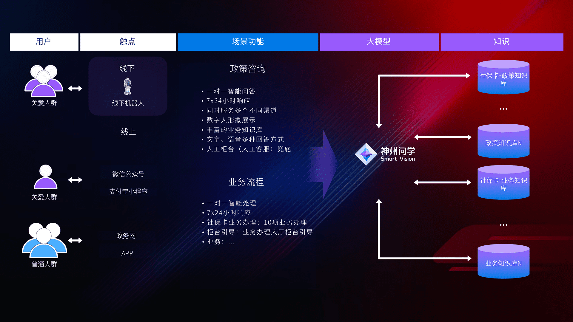 • 线上线下全覆盖:线上提供微信公众号、、支付宝小程序、、、政务网、、app多种渠道,,与线下机器人形成完整服务体系。。